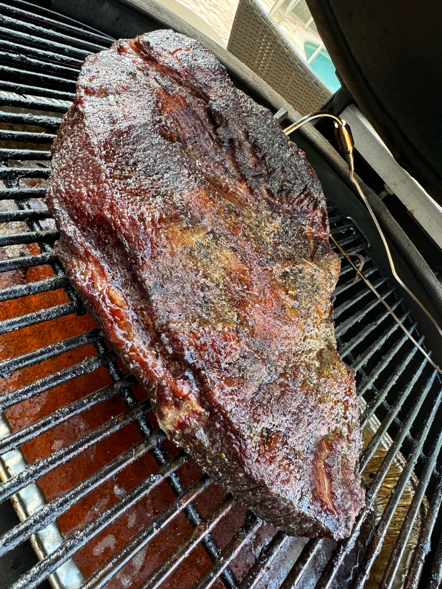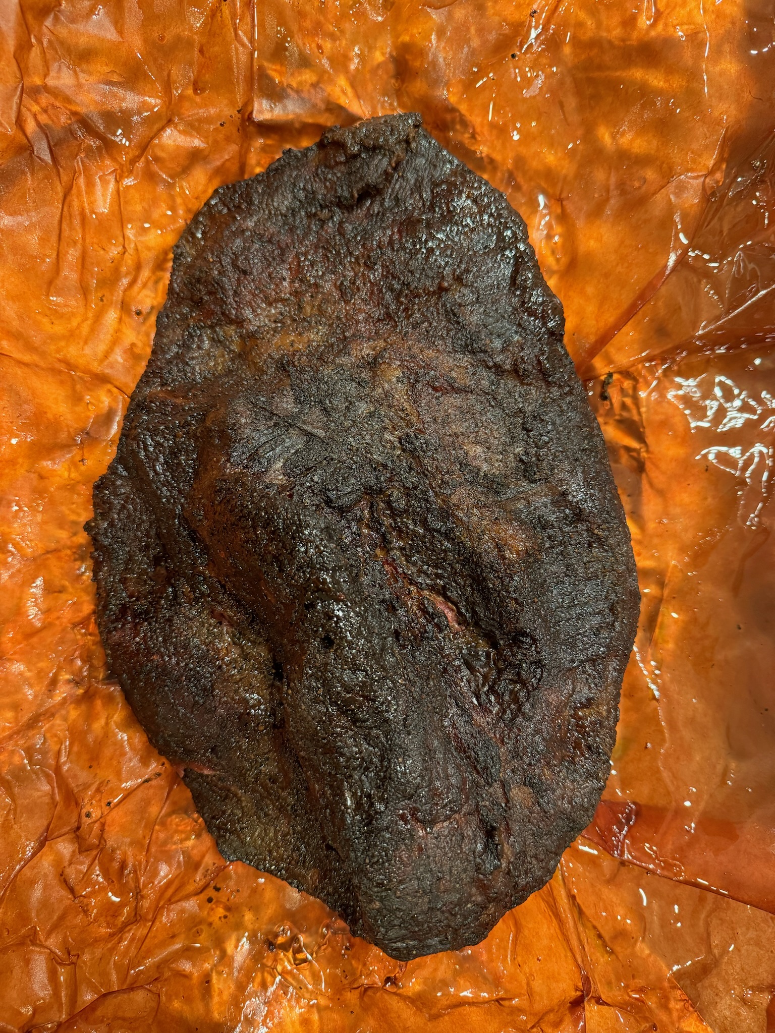Once the brisket hits 195°F, wrap it in three layers of aluminum foil and place it in a cooler, covering it with beach blankets. Let it rest for 3-4 hours to allow the juices to redistribute.