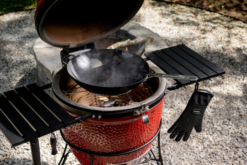 Welcome to your guide to Karbon Steel seasoning! This collection includes a wok, paella pan, two half-moon pans, Classic Joe® griddle, and Big Joe® griddle. Follow along in this guide or in your owner's manual to learn how-to season your pans!