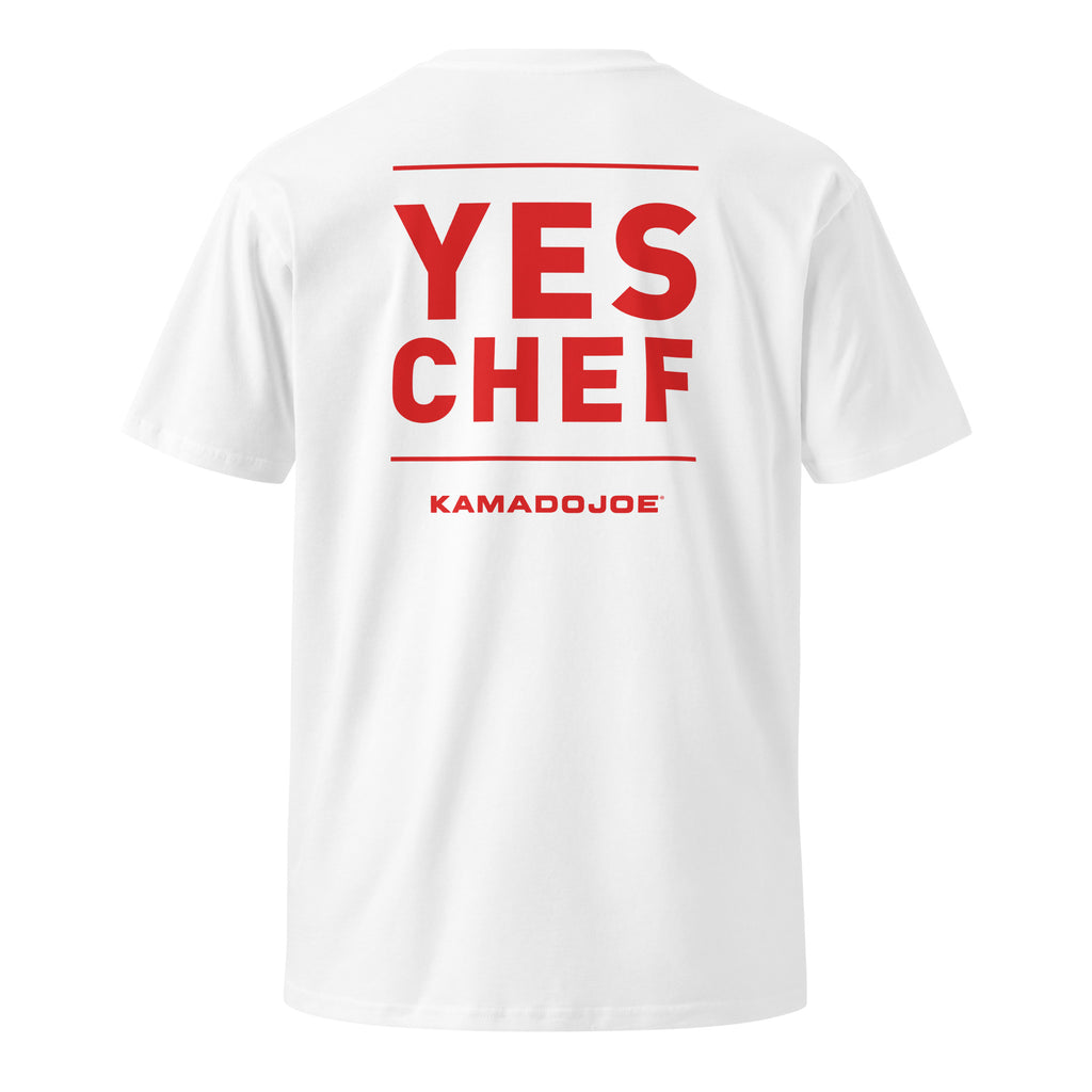 Showcase your grilling expertise with this t-shirt by Kamado Joe that features a fun Chef icon on the front and Yes Chef! on the back of the shirt.